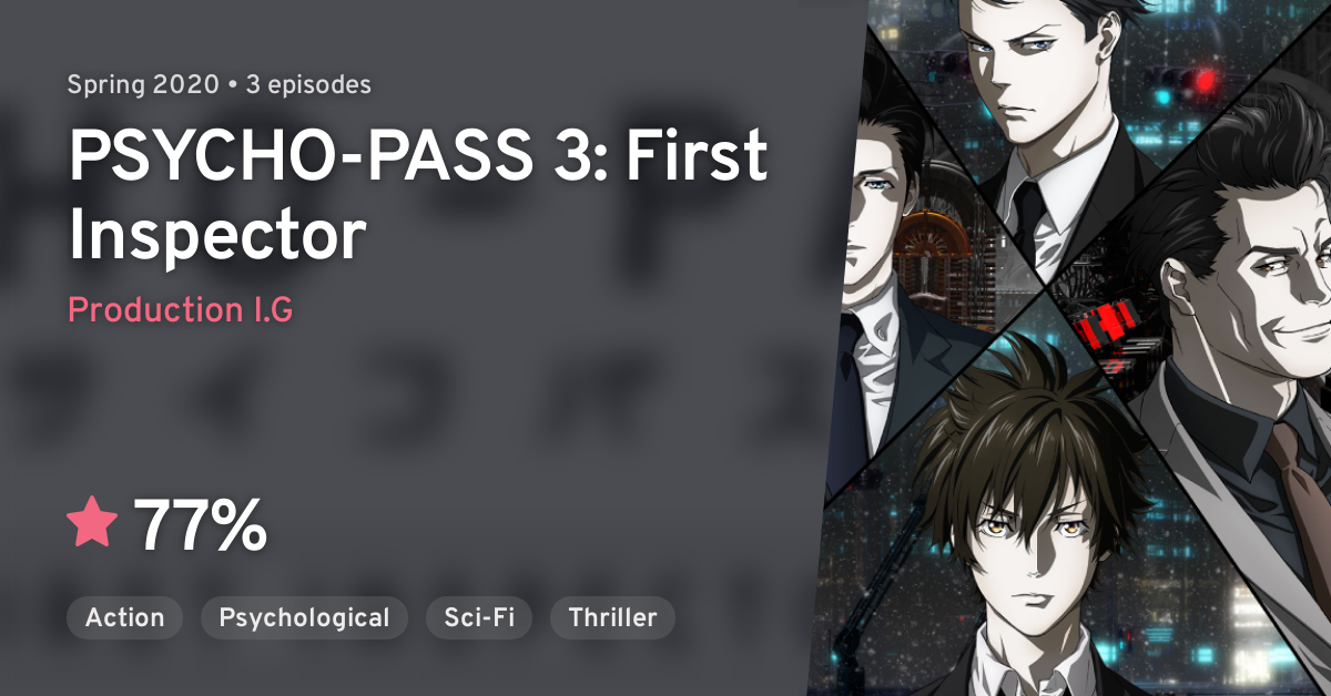 Psycho-Pass 3 First Inspector Streaming / First Look At Psycho Pass 3 First Inspector Post Credits Scene Psychopass : The first three episodes will be released on aniplex's official youtube channel, while the fourth and final episode will be streamed during the kimetsu matsuri online:
